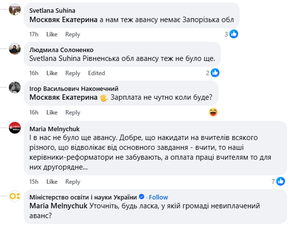 Освіторія.Медіа: — У коментарях до допису міністра освіти про те, що вже найближчими тижнями вчителі отримають збільшені на 30% зарплати, просто злива скарг. У них здебільшого 2 типи порушень: скарги на невиплату січневого авансу або на попереднє урізання надбавок. У Службі освітнього омбудсмена вони теж є?